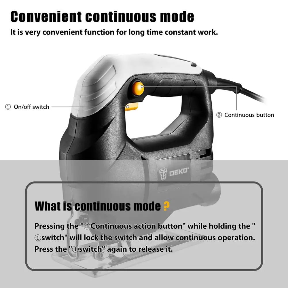 If You want to buy for DEKO 350W Jig Saw Convenient Continuous Mode Electric Saw with 1pc Blade Allen Wrench 2pcs Carbon B,then DEKO 350W Jig Saw Convenient Continuous Mode Electric Saw with 1pc Blade Allen Wrench 2pcs Carbon B is possible make you love